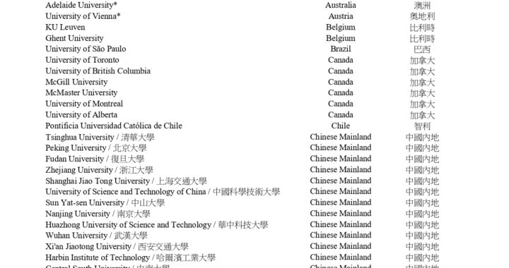 4所被刪除的大學,包括3間法國的大學,分別是Ecole Polytechnique、Université Grenoble Alpes、Universite Sorbonne Paris Cite-USPC,和德國的University of Freiburg。